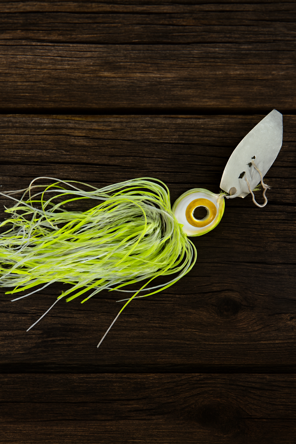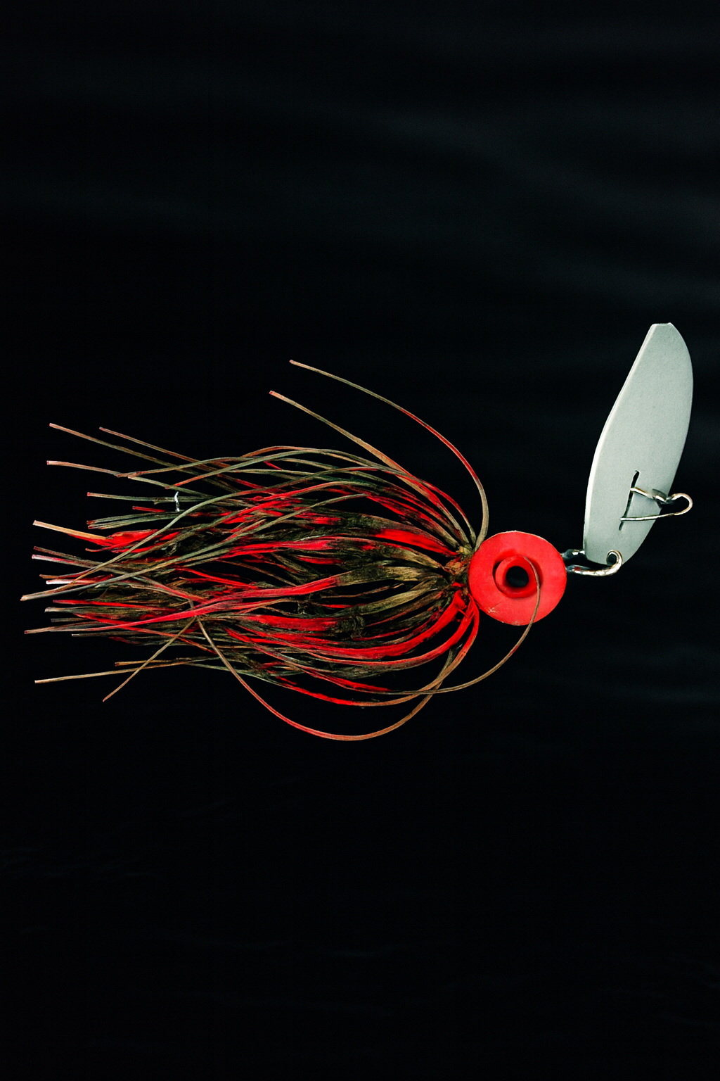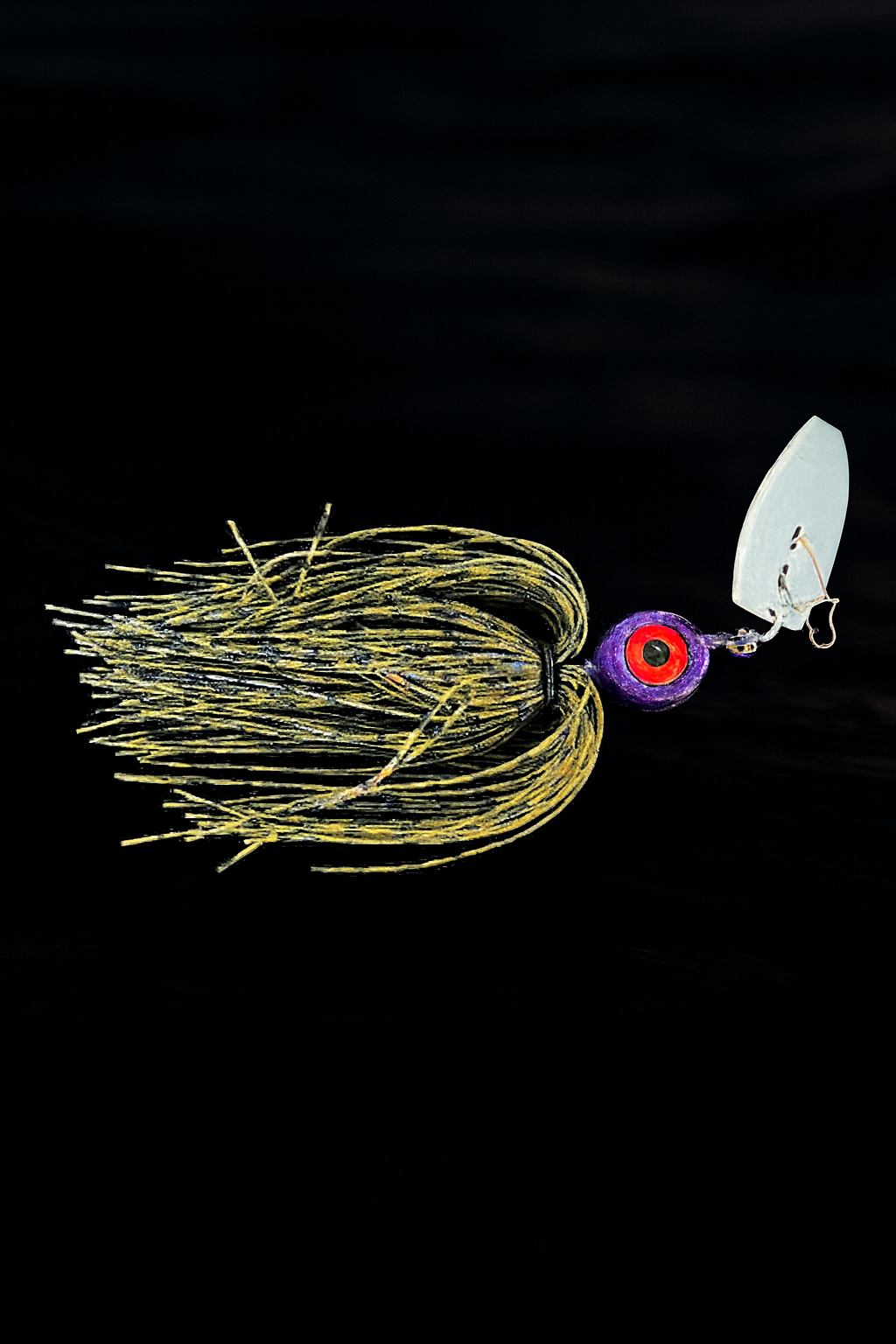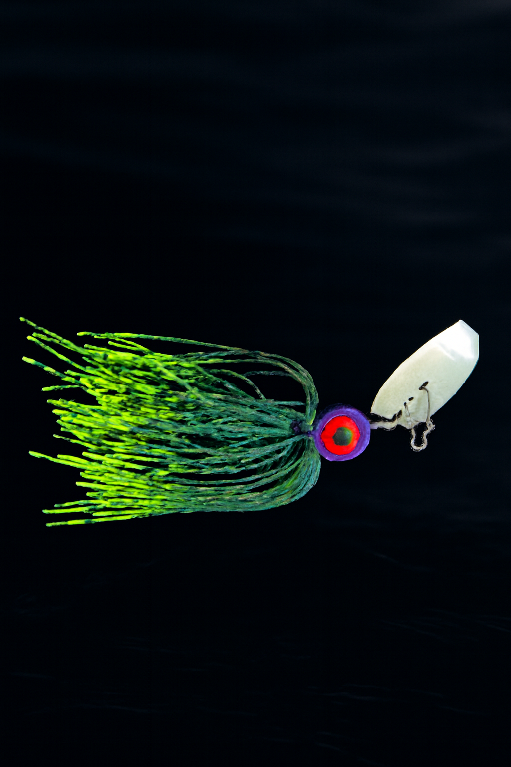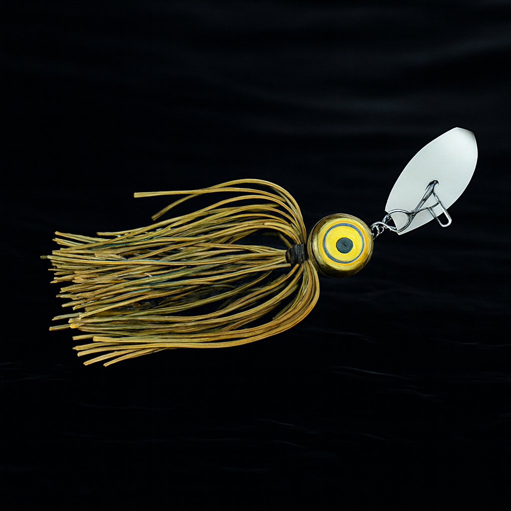 Combines a jighead with a small metal blade attached to the front. As you retrieve it through the water, the blade vibrates and flashes, creating both visual and vibration cues that mimic the movement of prey fish. This action is designed to trigger strikes from predatory species like bass, pike, walleye, and even some saltwater fish.